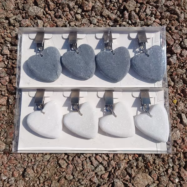 Snygga duktyngder i sten i form av hjärtan. Kommer i 4 pack, finns att välja mellan gråa eller vita.