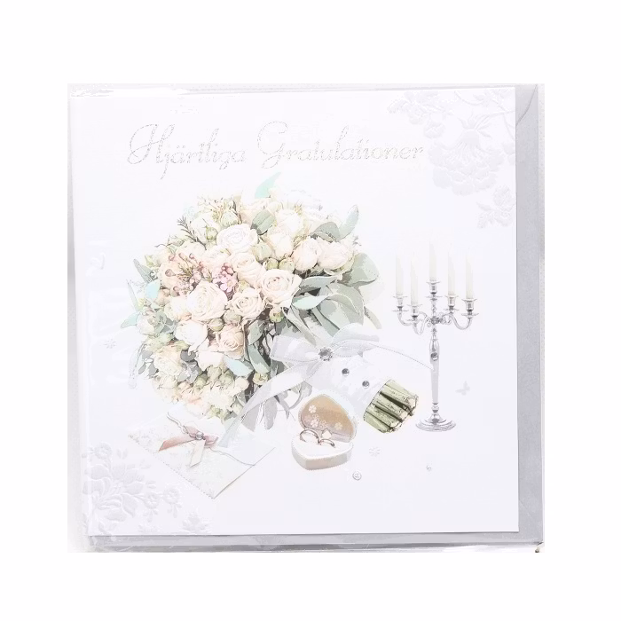 Kort för Bröllop el Förlovning 15 kr I lager KÖP Information Fint fyrkantig kort för Bröllop eller förlovning, med silvrigt kuvert.Storlek ca: 14,8 x 14,8cm