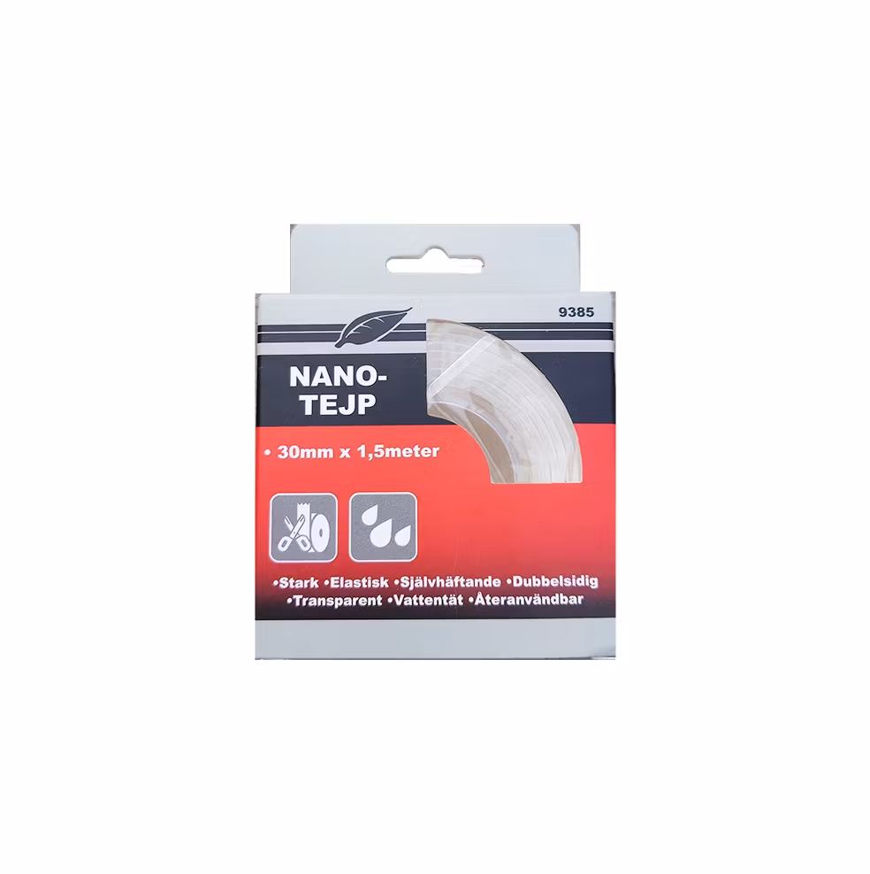 Nano Tape är en transparent, tjock och dubbelhäftande stark nanotejp som gör det lätt att fästa / tejpa fast saker på väggar, organisera sladdar under skrivbord eller få stopp på mattor som tycker om att glida runt. Stark tejp med brett användningsområde: Nanotejpen fäster på nästan alla typer av släta och jämna ytor.