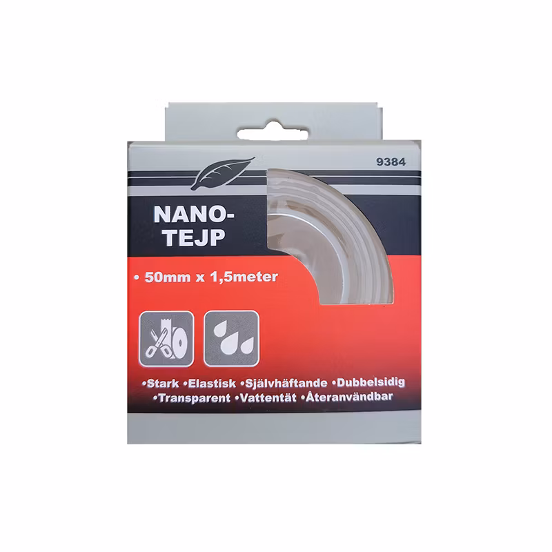 Nano Tape är en transparent, tjock och dubbelhäftande stark nanotejp som gör det lätt att fästa / tejpa fast saker på väggar, organisera sladdar under skrivbord eller få stopp på mattor som tycker om att glida runt. Stark tejp med brett användningsområde: Nanotejpen fäster på nästan alla typer av släta och jämna ytor.