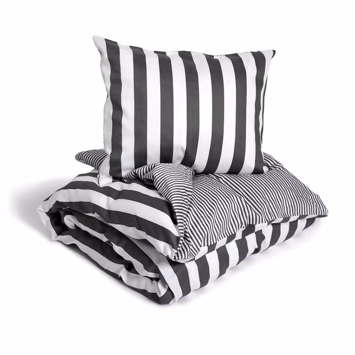 Bäddset Grebbestad Grått i underbar satin. Detta bäddsetet är vändbart, vilken gör att du får två bäddset i ett! Man kan välja mellan mindre ränder eller bredrandigt. Otroligt smart men det viktigaste av allt - I detta sover du fantastiskt mjukt och skönt! Både kudde och påslakan är double face - två olika sidor.